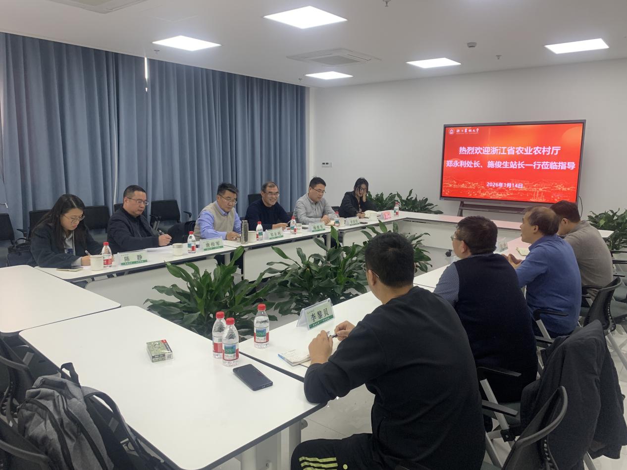 2026年1月14日,浙江省农业农村厅种植业和种业管理处处长郑永利、省种子管理总站原站长施俊生一行6人到学院进行考察交流。现代农学院院长曾大力、副院长赵光武、学术副院长王洋及教师代表李黎贝参加座谈会。